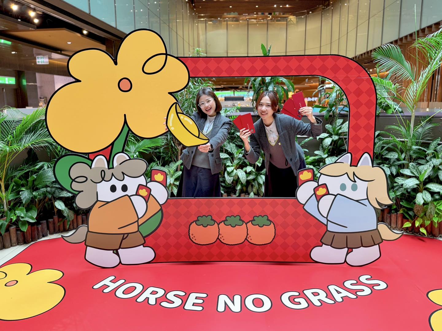 ▲京站今年特別與人氣插畫家「馬兒不吃草」合作,1/24至2/22於3F中庭圓台打造超萌打卡點。Q卡友拍照上傳社群即可兌換限定紅包袋或春聯(圖/業者提供)